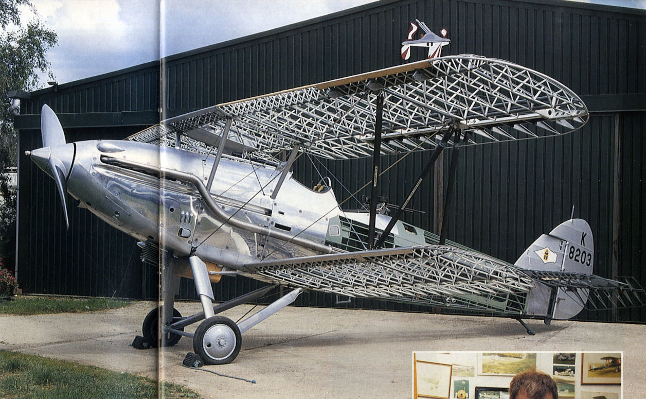 Регистрационный номер: K8203 The uncovered airframe of Hawker Demon K8203 outside Skysport’s hangar. This magnificent aircraft vies with Bristol Bulldog G-ABBB as the company’s most impressive project so far.