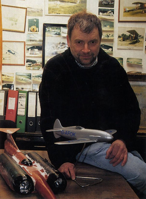 Регистрационный номер: G-AFOK Skysport founder and managing director Tim Moore in his office at Rotary Farm, with a model of the Napier-Heston Racer monoplane of 1940. One of his long-term ambitions is to build a flying replica of the Sabre-powered beast.