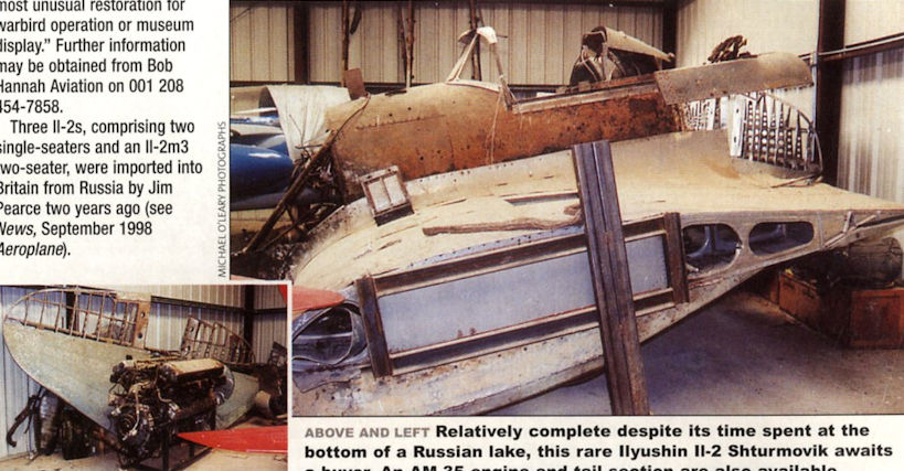 Relatively complete despite its time spent at the bottom of a Russian lake, this rare Ilyushin Il-2 Shturmovik awaits a buyer. An AM-35 engine and tail section are also available.