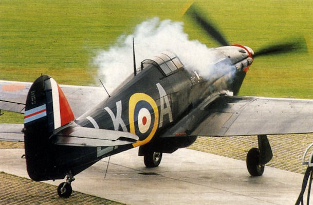 Регистрационный номер: BE417, G-HURR With its characteristic smoky start-up, the Real Aeroplane Company’s Hurricane XII BE417/G-HURR taxies out for its display.