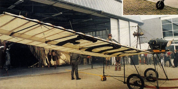 Регистрационный номер: D-ETRI [2] An Etrich Taube replica, built by Flugplatz-BG of Furstenwalde near Frankfurt, was one of the stars of the ILA 2000 show on June 6-12, 2000 at Berlin-Schonefeld Airport. It was built from original plans, and is powered by a Czech Walter Minor engine. The replica first flew in May, and is based at Edel airfield, about 25 miles east of Berlin. Flugplatz-BG also had an Albatross B I and a Farman biplane on static exhibition.