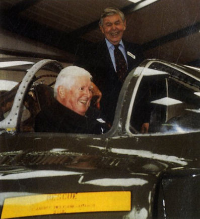 David Morgan tries out the cockpit of Tangmere’s Swift FR.5, while Peter Throne awaits his turn; both test flew Swifts for Supermarine.