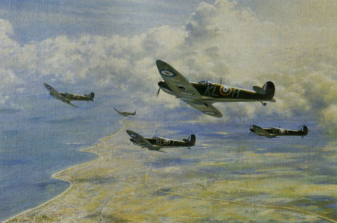 Never Forget, by John Young, features Spitfires of 54 Sqn as a 60th anniversary tribute to the aircraft and flyers of the Battle of Britain.