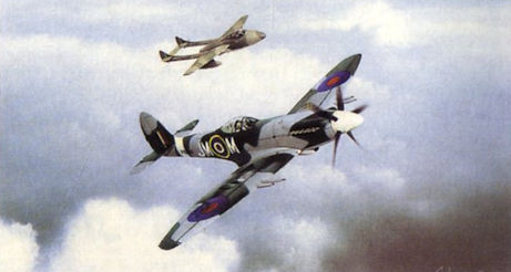 Самолёты на фотографии: De Havilland Vampire T / Vampire NF / D.H.113 / D.H.115 - Великобритания - 1950Supermarine Spitfire Mk.XVIII / 21 / 22 / 24 - Великобритания - 1944