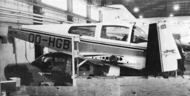 Регистрационный номер: OO-HGB, OO-HGC Caught in the act of being uncrated in the Abelag hangar at Brussels are Grumman American AA-5A Cheetah OO-HGB (2869) and Grumman American AA-1C Trainer OO-HGC (2870) in camouflage paint scheme below it.