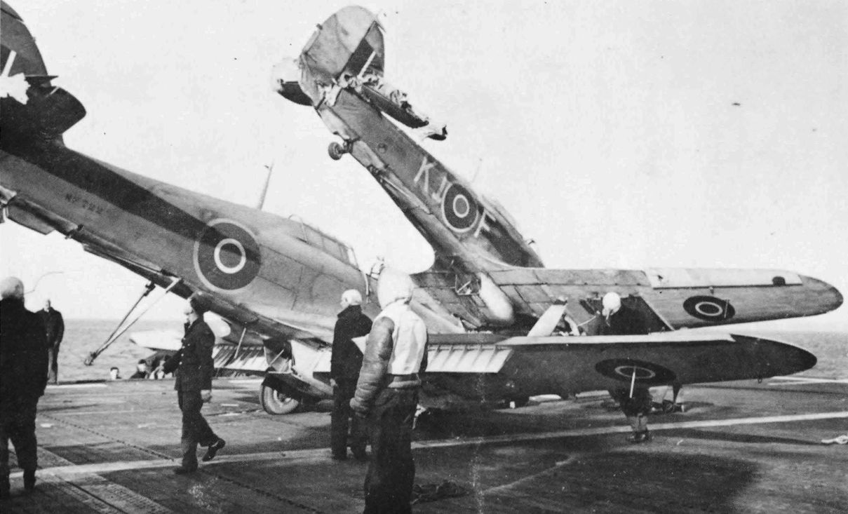 Регистрационный номер: NF722, NF728 Sea Hurricane NF722 overshoots into NF728, 4 October 1944