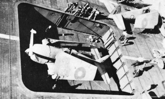 Регистрационный номер: JV215, NF627 Seafire NF627 on elevator, Hellcat JV215 on right