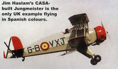 Регистрационный номер: G-BVXJ Jim Haslam's CASA-built Jungmeister is the only UK example flying in Spanish colours.