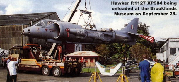 Регистрационный номер: XP984 Hawker P.1127 XP984 unloaded at the Brooklands Museum on September 28, 2000.
