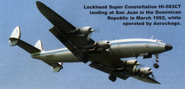 Регистрационный номер: HI-583CT Lockheed Super Constellation HI-583CT landing at San Juan in the Dominican Republic in March 1992, while operated by Aerochago.