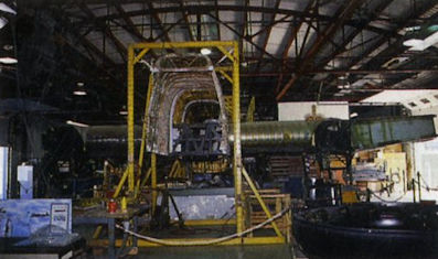 Fuselage of the Gerin Varivol monoplane, minus its wings, awaiting restoration at Angers.