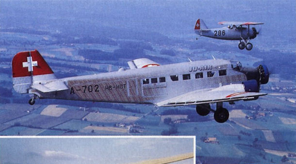 Регистрационный номер: A-702, HB-HOT, HB-RAG [2] Ju 52/3m HB-HOT formates with Dewoitine D-26 HB-RAG, now wearing its original Air Force colours as 286.