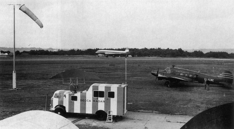 Регистрационный номер: G-AGWE Decca’s first aircraft was Avro Nineteen G-AGWE, seen here at Blackbushe on May 14, 1953 with the company’s mobile radar van. An early BOAC Comet is taking off from the runway.