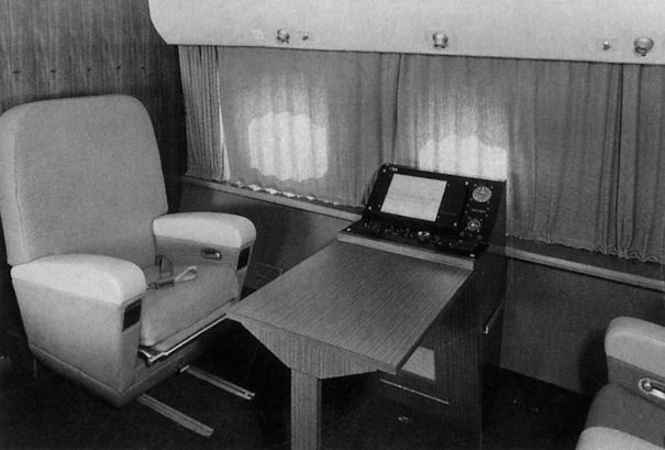 Регистрационный номер: G-ALZP [5], CN-MAK [5] “Decca’s problem was how to install all of the displays without spoiling the magnificent decor”. This is the Royal Suite, fitted with a Decca “Harco” display with self-setting rolling map.