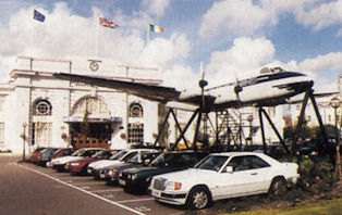 This D.H. Heron, mounted outside the old terminal, has been painted to represent the aircraft which operated the last commercial service out of Croydon on September 30, 1959.