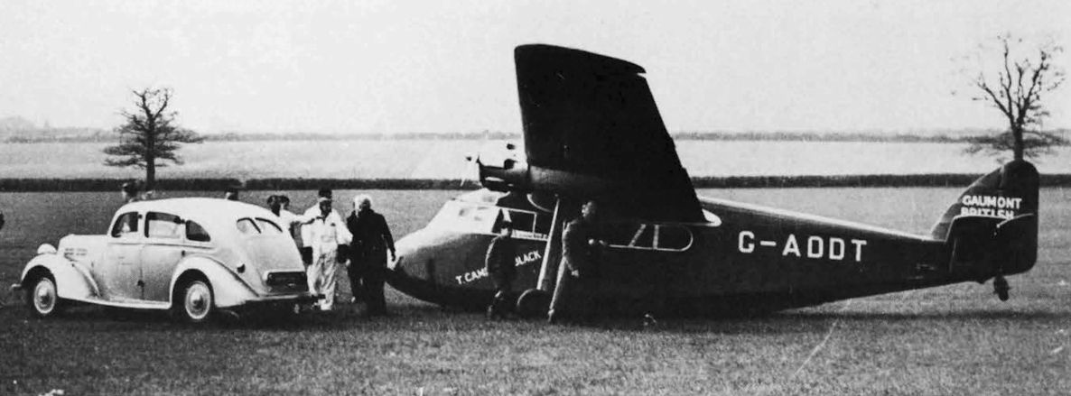 Регистрационный номер: G-ADDT Short Scion G-ADDT with "T. Cameron Black" on the fuselage and "Gaumont British" on the tail. Where and when was this taken and what is the significance of these inscriptions?