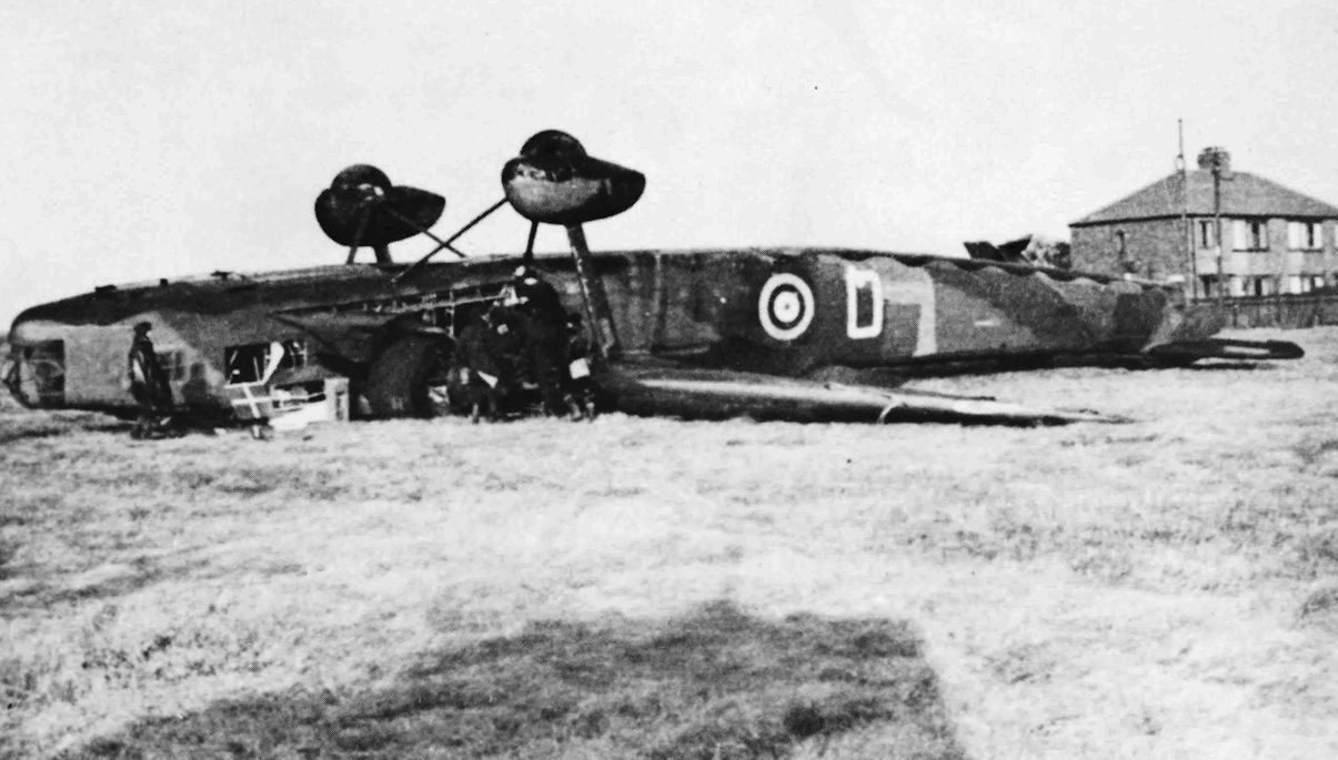In the background is a Beaufighter VI of 255 Squadron carrying the individual code letter 'E' on the nose. Whether it was involved in the accident or whether both have been moved to the airfield dump seems in doubt. If the latter, what happened to the Beaufighter and what serial does it carry?Самолёты на фотографии: Bristol Beaufighter - Великобритания - 1939Hawker Hurricane - Великобритания - 1935