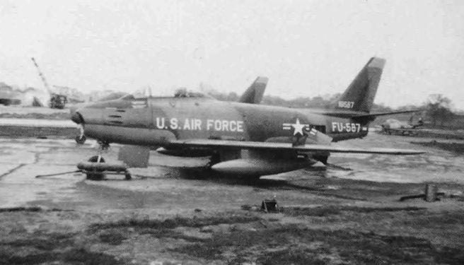 Регистрационный номер: FU-587, XB701 From Peter Amos comes this photograph of Sabre 19587. It was previously with the Royal Air Force as XB701. Where was the picture taken. Possibly this is a job for one of our crane recognition experts.