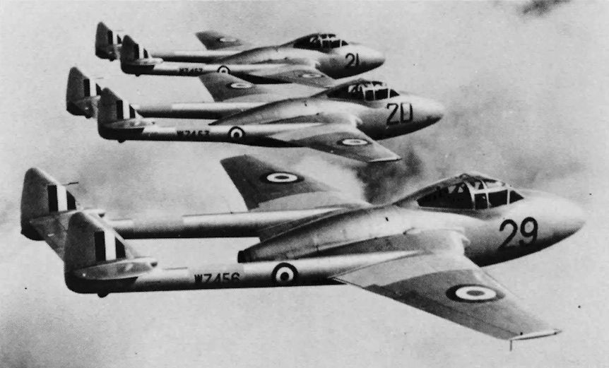 Самолёты на фотографии: De Havilland Vampire T / Vampire NF / D.H.113 / D.H.115 - Великобритания - 1950