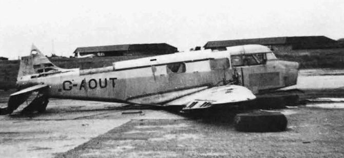 Регистрационный номер: G-AOUT The engineless shell of Oxford G-AOUT, formerly Belgian O-6 which returned to the UK to be registered to Eagle Aviation 8.56. It is normally reported as having been burnt after film use in 8.56 but this photograph was taken at Ringway on 18.7.58 and shows no obvious signs of fire damage to the fuselage or wing. Instead, we believe that it was broken up as spares for G-AJLR and G-AJXH.