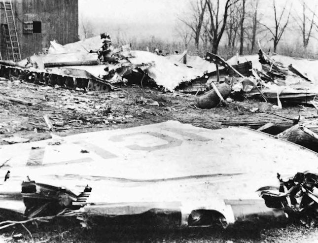 The photograph, recently acquired by John Wegg, shows the remains of a "TWA DC-2" but the visible part of the registration on the wing (NC173..) proves it to be a DC-3. The time is winter, possibly in an east coast or central state. Can anyone suggest which DC-3 ?