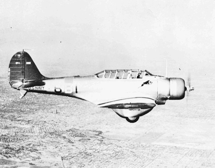 The XBT-2, 0627, photographed on 25 November 1938. Note the revised engine installation and sideways-retracting undercarriage.