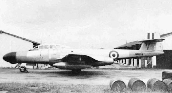 Регистрационный номер: WM148 Meteor TT.20 WM148 served with No.3/4 CAACU after being converted from a NF.11. Presumably the photograph was taken at the unit's base at Exeter Airport.