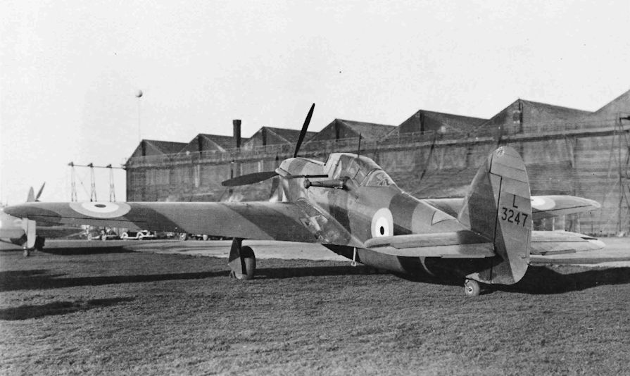 Регистрационный номер: L3247 Henley target tug L3247 was serving with No.3 Armament Training Station at Sutton Bridge when this photograph was taken in August 1939. Already the hangar has camouflage screens and there is an anti-gas patch on top of the fuselage of the Henley.