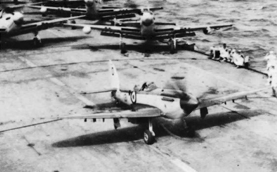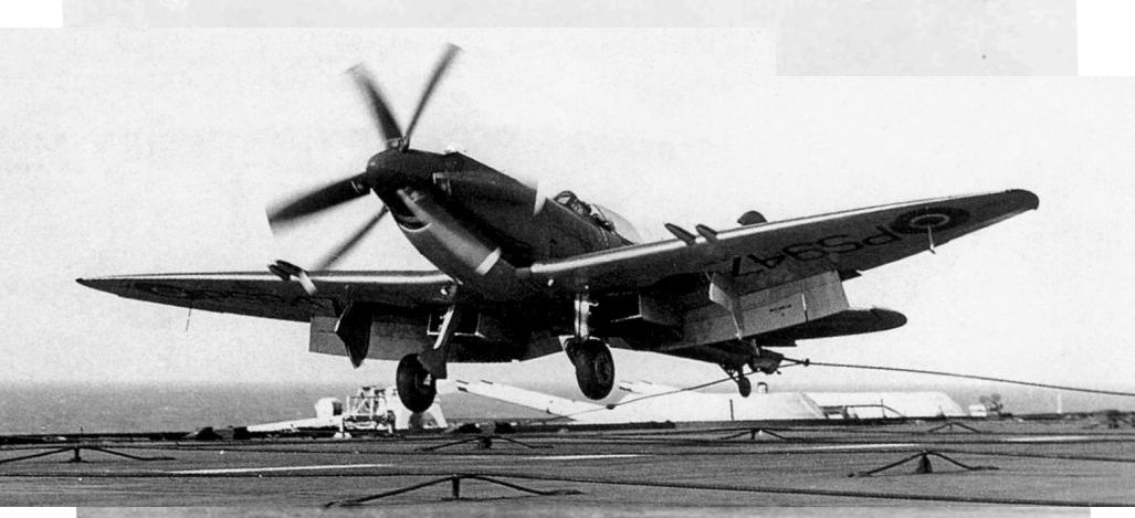 Seafire PS947 landing onСамолёты на фотографии: Supermarine Seafire 46 / 47 - Великобритания - 1946