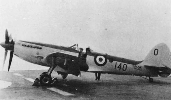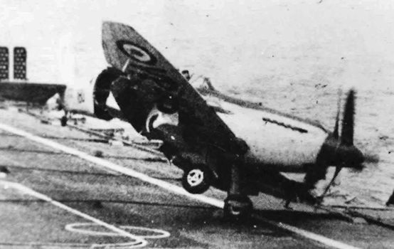 Регистрационный номер: PS947 Ранний серийный Seafire Mk 47 зацепился гаком за трос аэрофинишера во время посадки на британский авианосец.