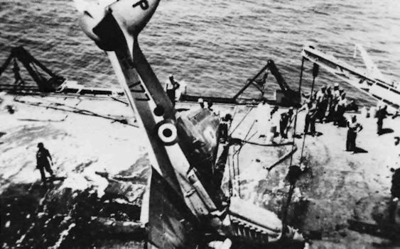 Регистрационный номер: VP436 VP436 of No.804 Squadron swung after landing and went overside, HMS Ocean