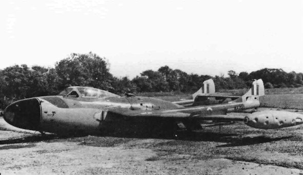 Регистрационный номер: WX921 Venom NF.3 WX921 of Station Flight, Coltishall, crashed on landing there on 17 January 1957. The tip tank, presumably the invisible one, caught fire. The other seems to have been shot at.