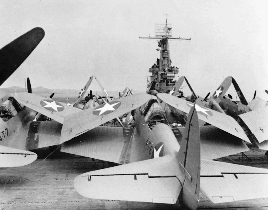 Douglas TBD-1s of VT-3 aboard the USS Saratoga during prewar operations in 1939.