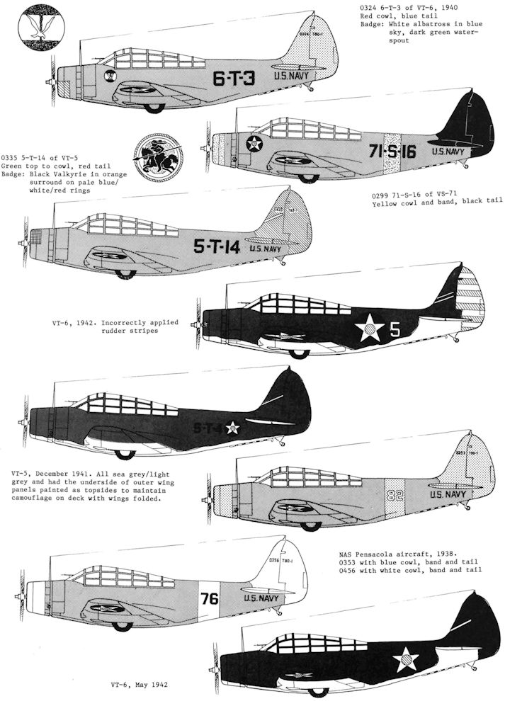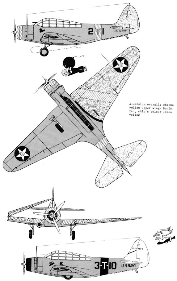 Prototype XTBD-1 in 1936 shows an earlier find and rudder shape. In production version, fin was taller and rudder of narrower chord.