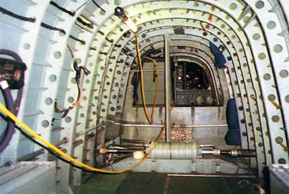 Регистрационный номер: PA474 [6] The fuselage interior stripped for servicing, revealing the flap jack mounted on the floor.