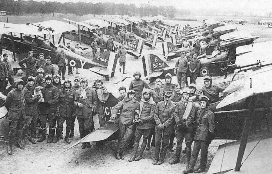 Регистрационный номер: B8254, C1106, C6458, C8846 Pilots and groundcrew of No 1 Sqn RAF with their Royal Aircraft Factory S.E.5as at Clairmarais, near St Omer, in July 1918. The unit had re-equipped with S.E.5as that January.