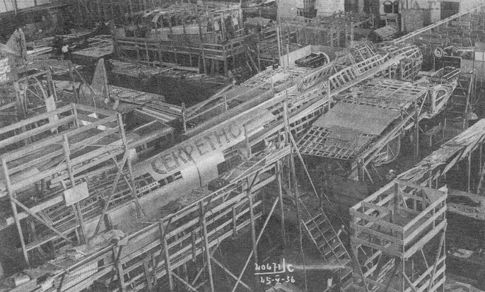 Сборка первого опытного экземпляра АНТ-42 на заводе опытных конструкций ЦАГИ. Июнь 1936г.