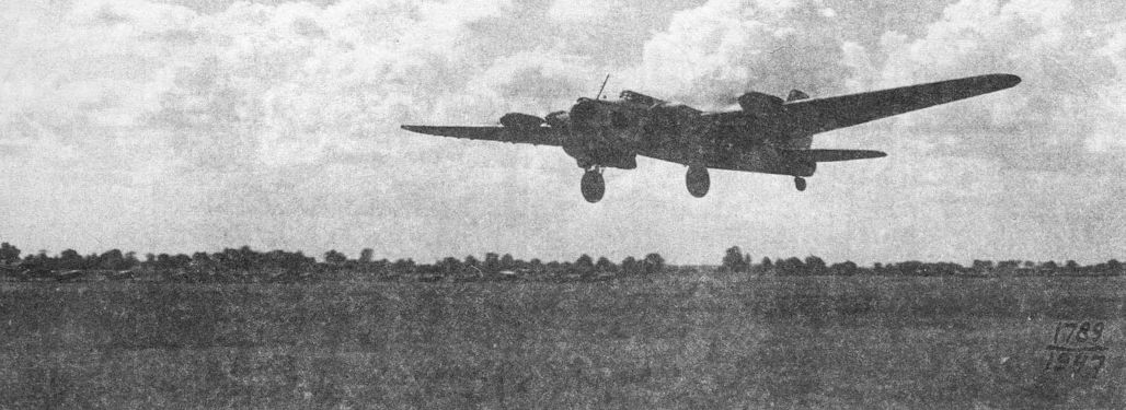 Бомбардировщик Пе-8 с двигателями АШ-82 и носовой частью фюзеляжа нового типаСамолёты на фотографии: Петляков Пе-8 / ТБ-7 - Россия - 1936