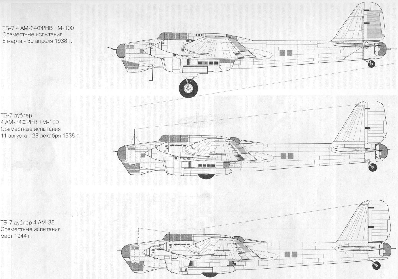 Самолёты на фотографии: Петляков Пе-8 / ТБ-7 - Россия - 1936Петляков Пе-8 ОН - Россия - 1945