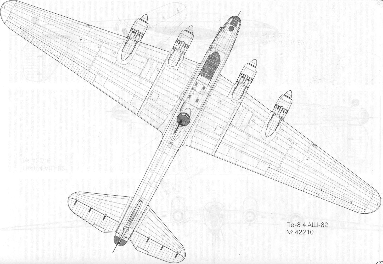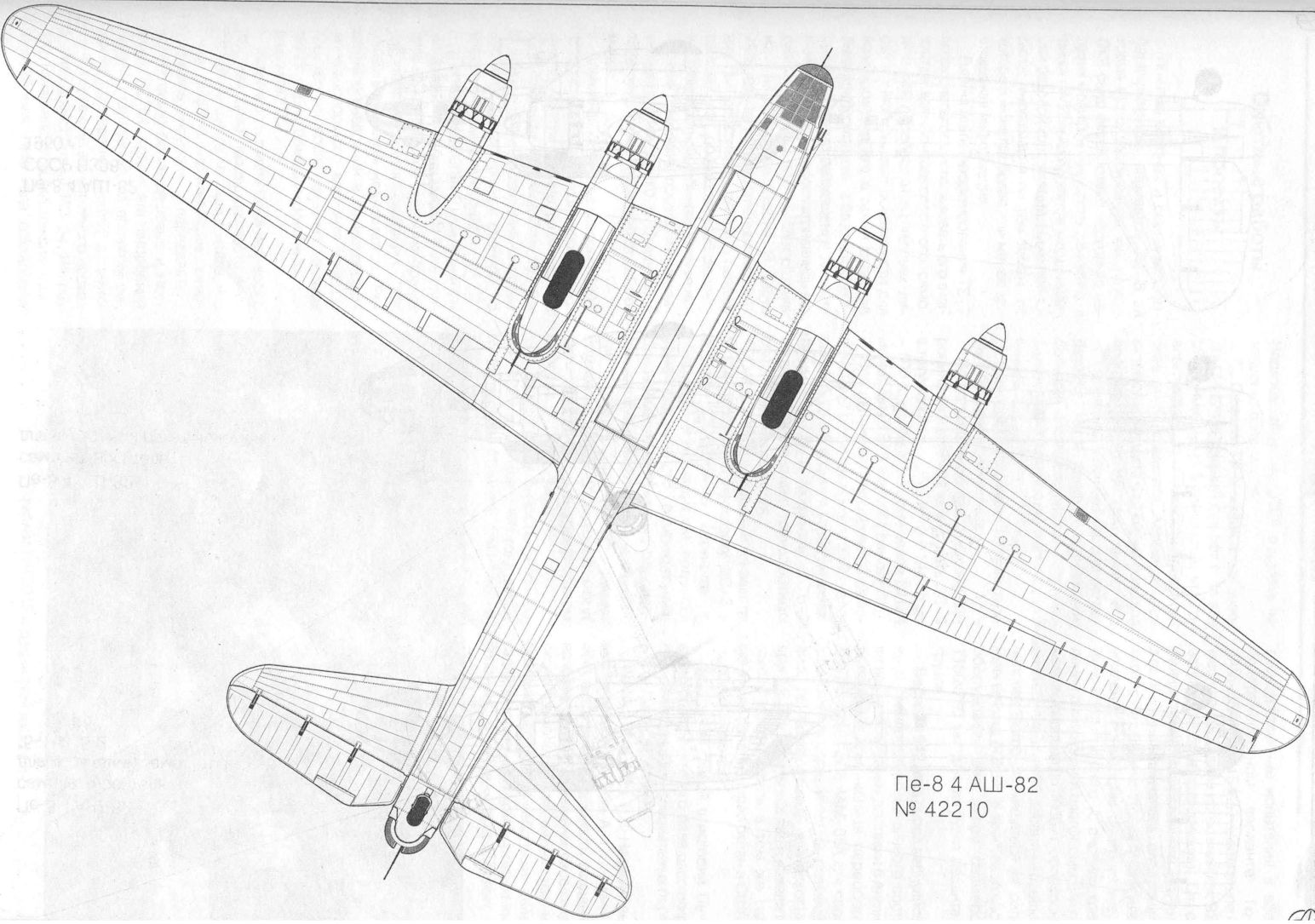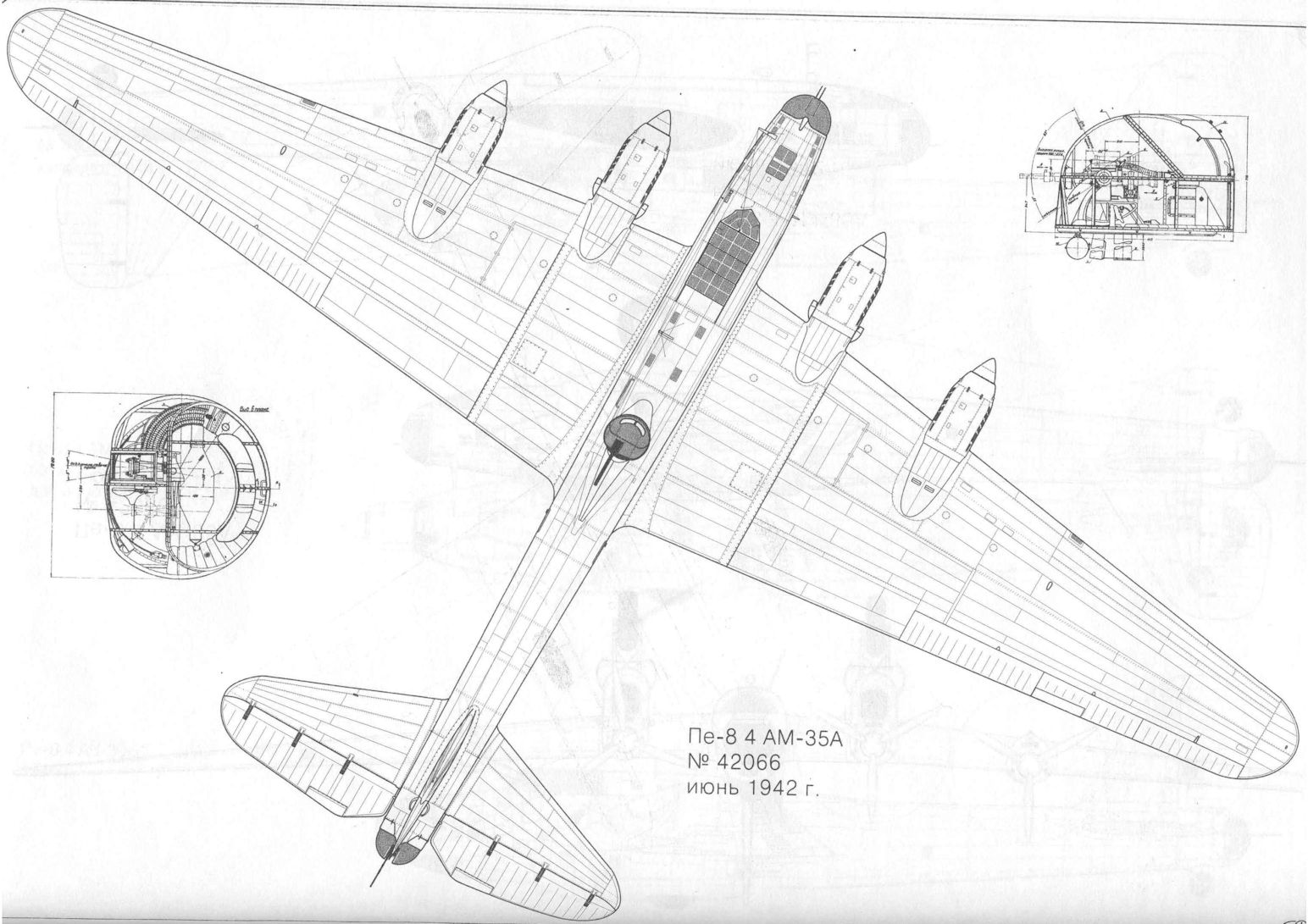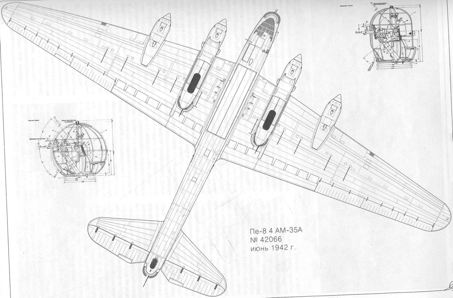 Компоновочная схема бомбардировщика Пе-8 4 АМ-35А