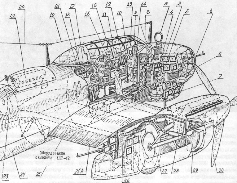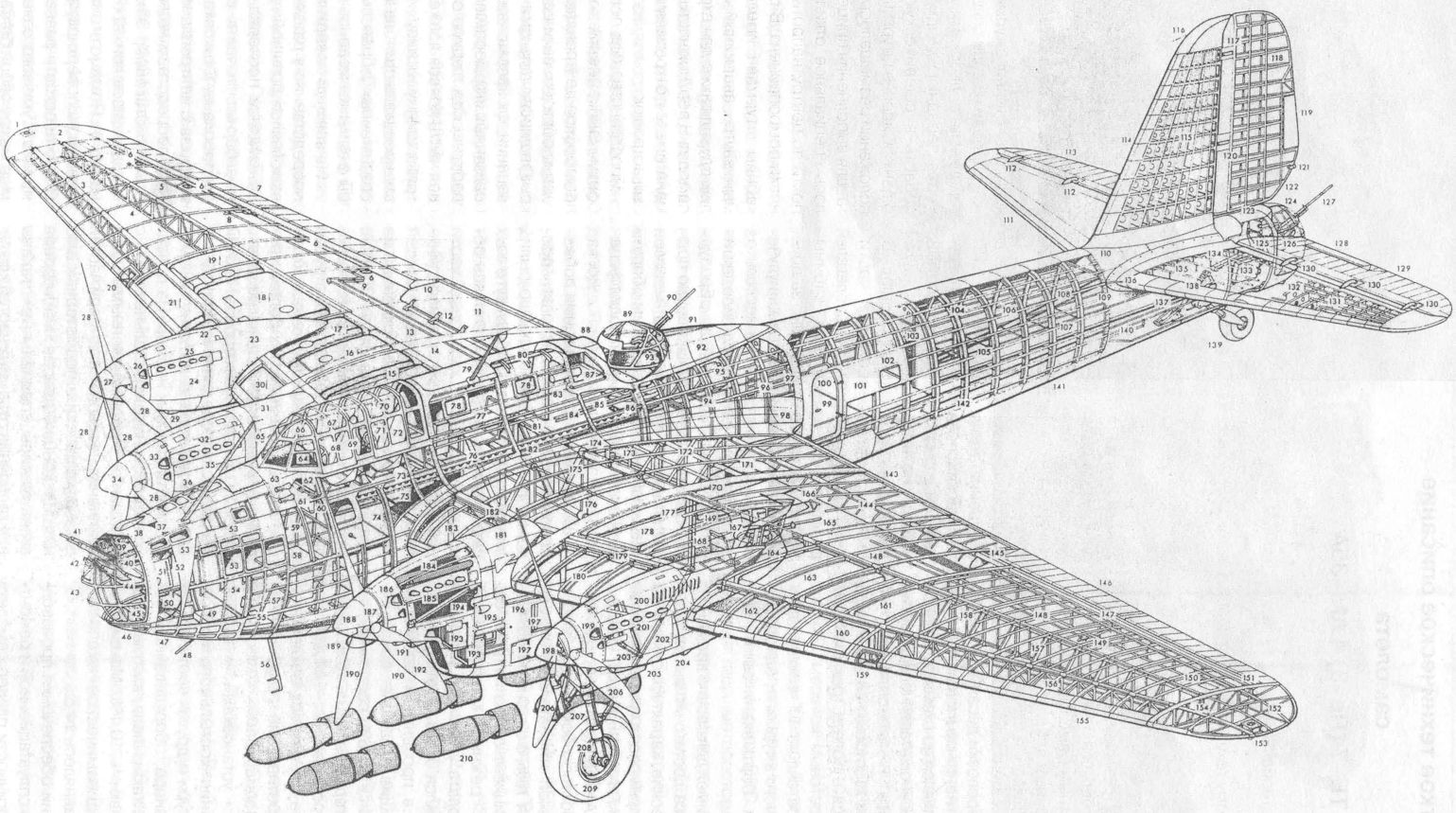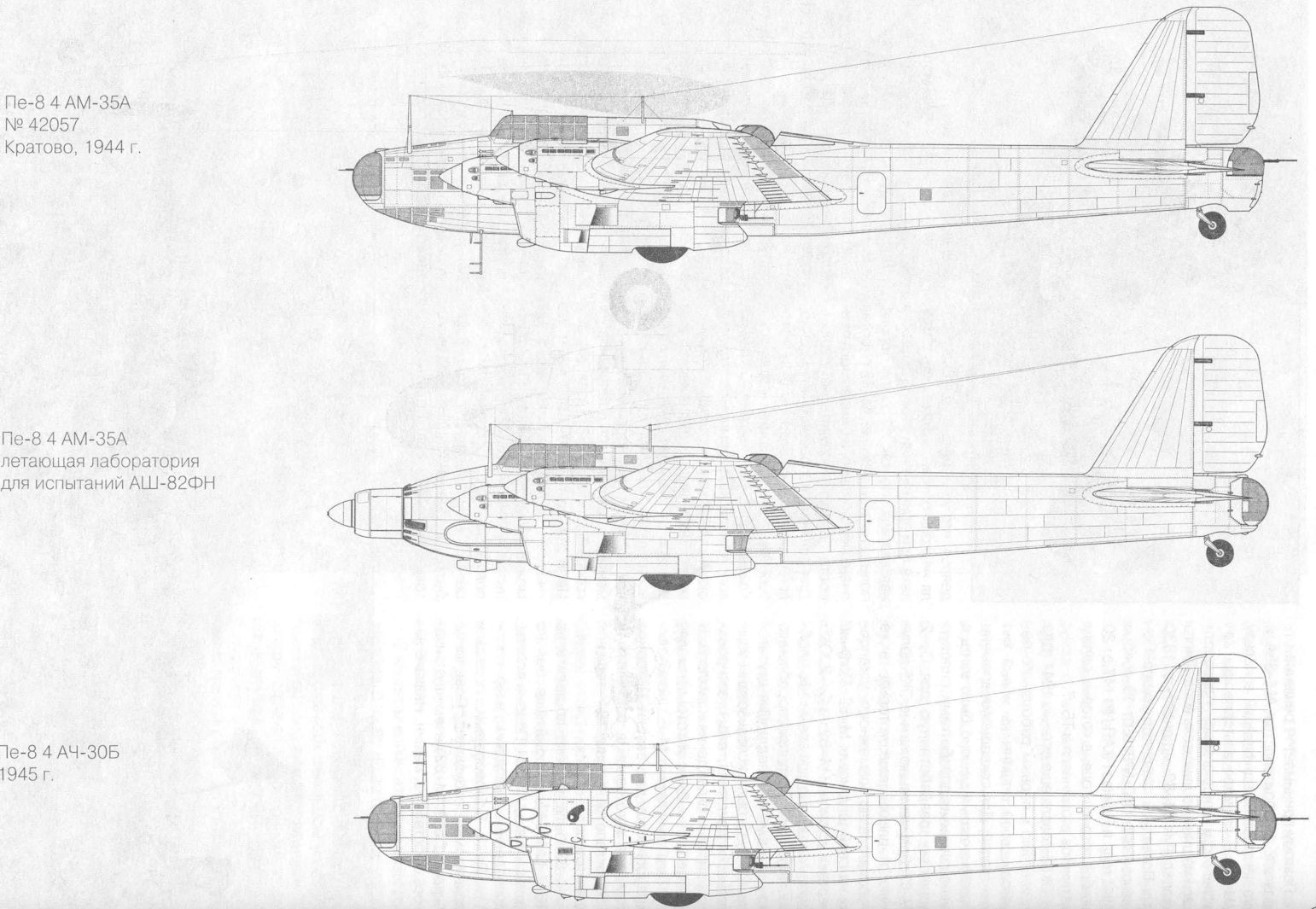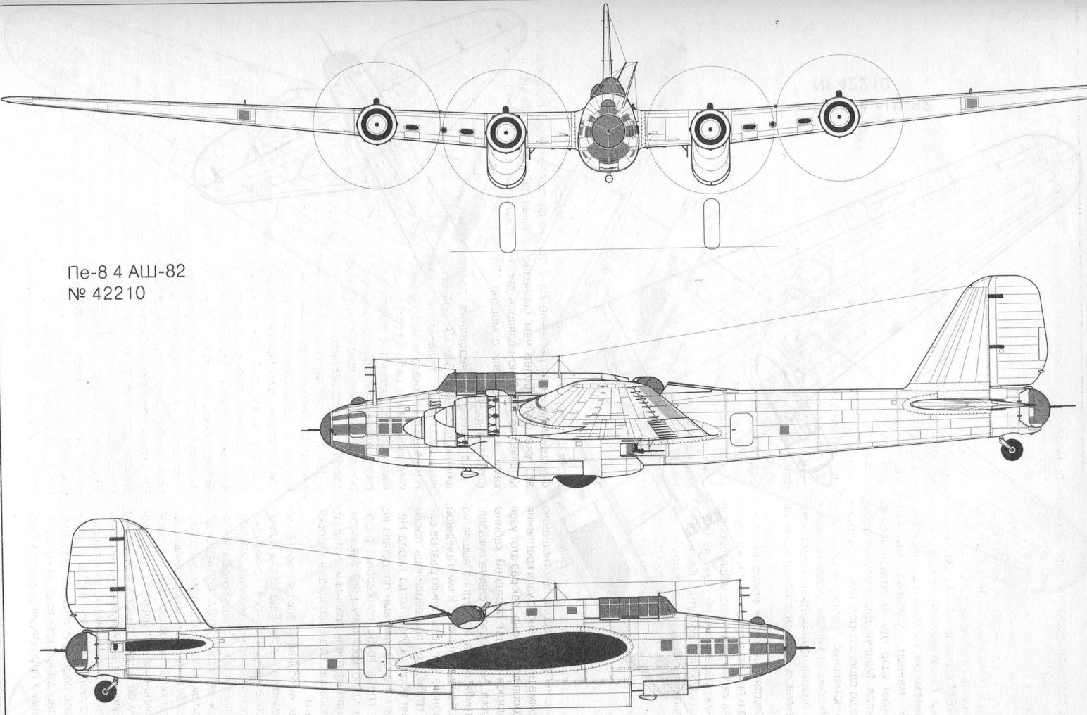 Компоновочная схема бомбардировщика Пе-8 4 АМ-35А