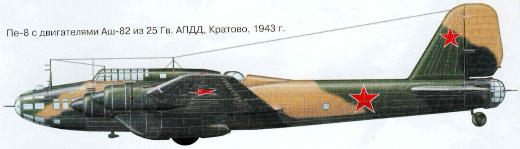 Пе-8 с двигателями Аш-82 из 25 Г в. АПДД, Кратово, 1943 г.