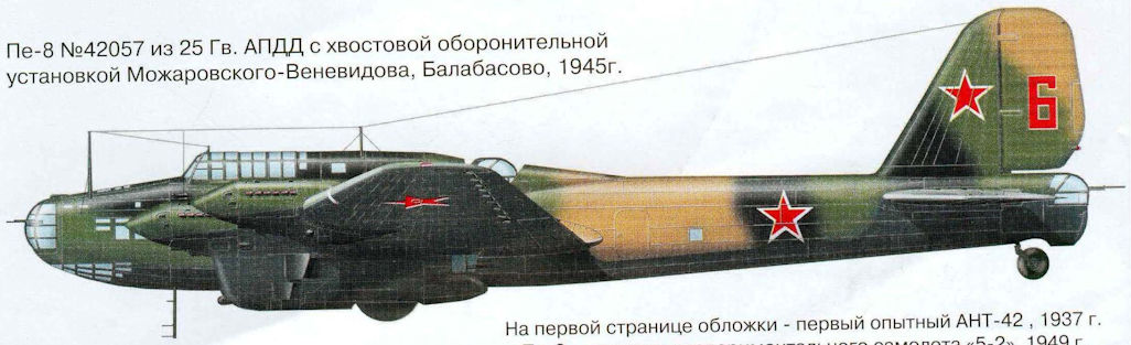 Пе-8 № 42057 из 25 Гв. АПДД с хвостовой оборонительной установкой Можаровского-Веневидова, Балабасово, 1945г.