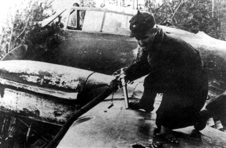 Воентехник Лавронов заправляет Пе-2, Ленинградский фронт