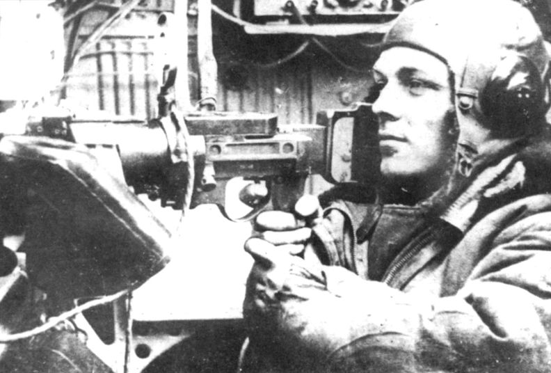 Стрелок-радист ведет огонь из бортового пулемета ШКАС
