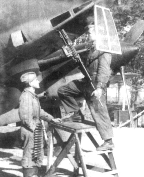 Бортовая установка под пулемет ШКАС была введена на 23-й серии в конце июля 1941 г. Стрелок О. Тапханаев сбил два вражеских самолета. Хорошо видно, что перед люком стрелка имеется небольшой откидной озырек.