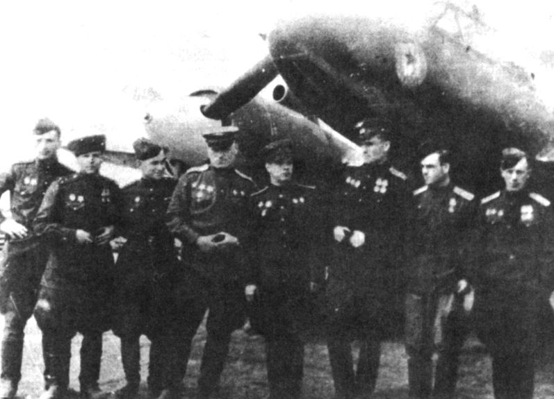 Летчики 99-го гв. орап у самолета Пе-2 с моторами М-82Ф
