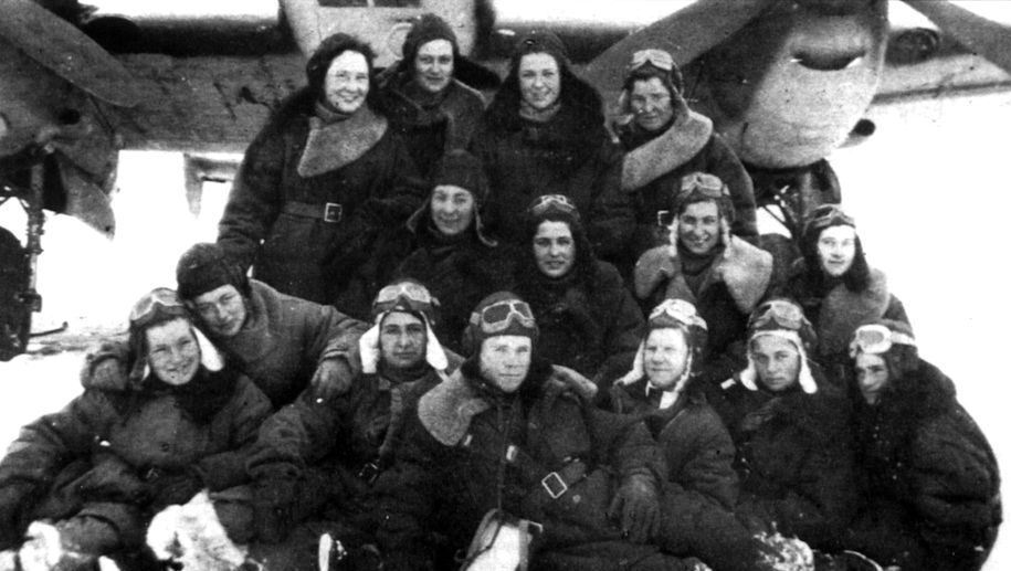 В 8-й заб проходили подготовку экипажи женского 587-го бап. На этом снимке летчицы сфотографировались со своими инструкторами