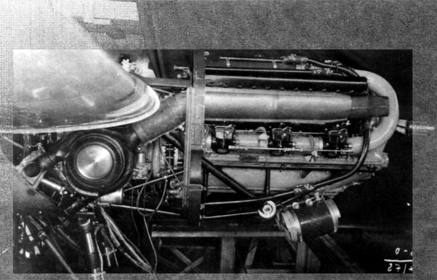 Двигатель М-105ТК на самолете "100"; хорошо видна турбина турбонагнетателя ТК-2