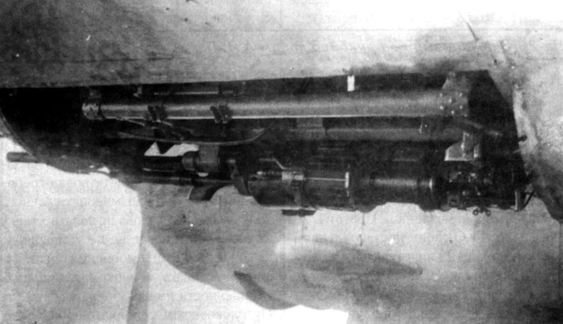 Пушка ШВАК на подфюзеляжной установке Пе-3 завода N 22, 1944г.